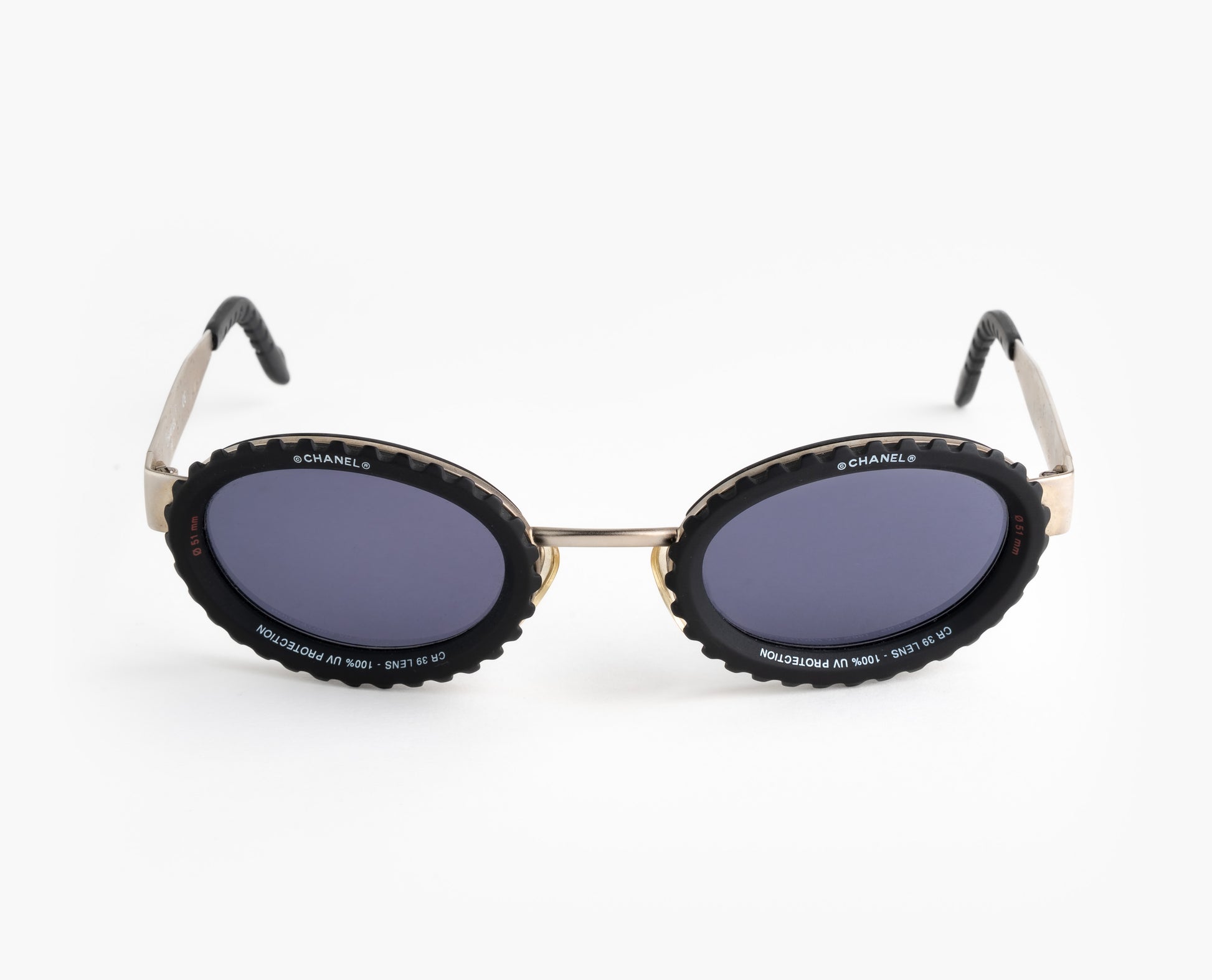 Vintage late 90’s/Y2K era Chanel camera lens sunglasses. So cool and a must have for Chanel collectors. Front rim shaped like camera lenses and has rubber end tips. This model inspired the 2023 Pharrell LV sunglasses that are also similar to camera lenses. This is carefully used in very good condition.