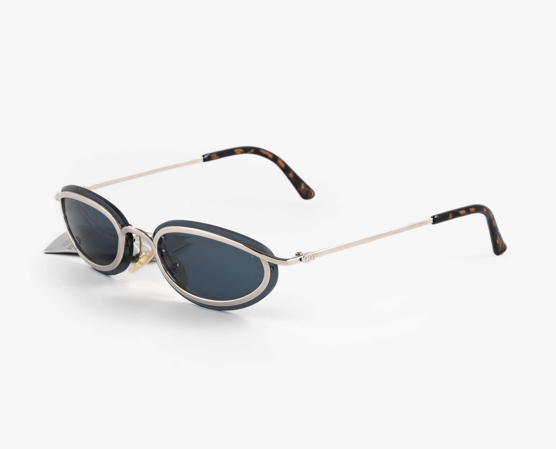 Vintage 1998 Christian Dior sunglasses. Silver color frame lenses sticking outside the rim. Beautiful "CD" emblem shown on the sides. Vintage Dior is so iconic.