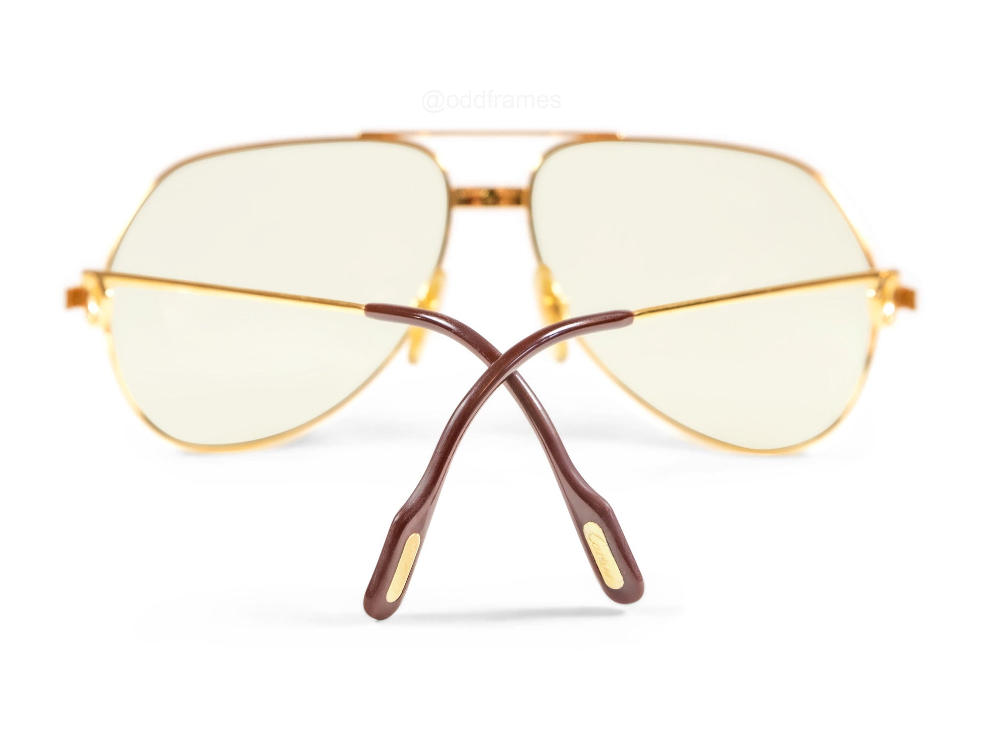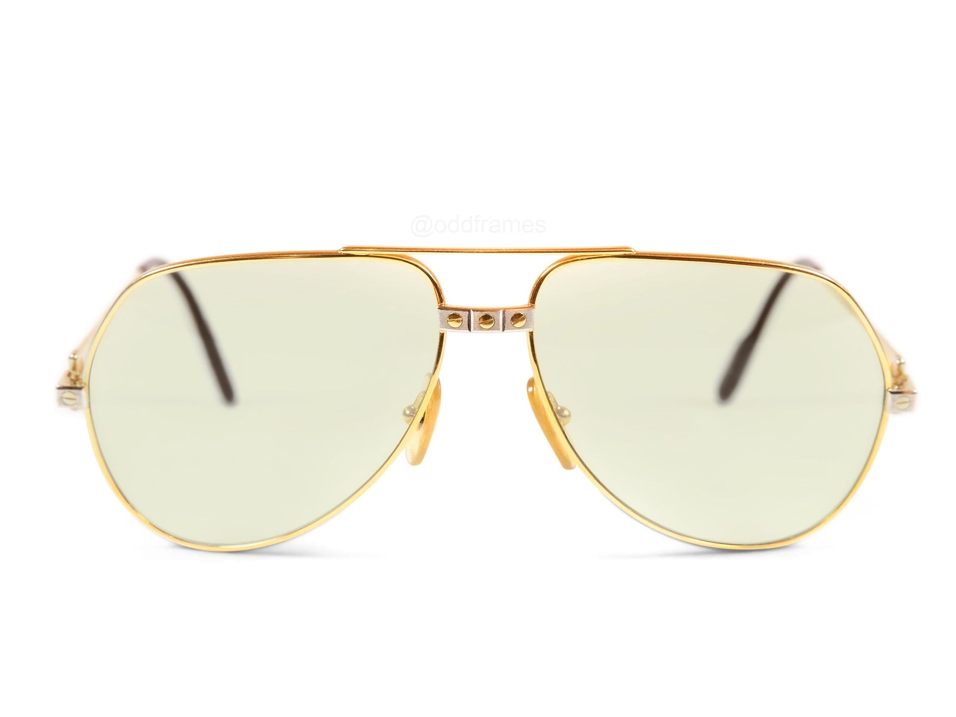 Vintage Cartier Vendome Santos. This model was from the first official eyewear line Cartier launched in 1983. And is very respected among vintage luxury collectors. Heavy 22k gold plated with the iconic Santos screws design. These are important because many big political and celebrity figures wore them.