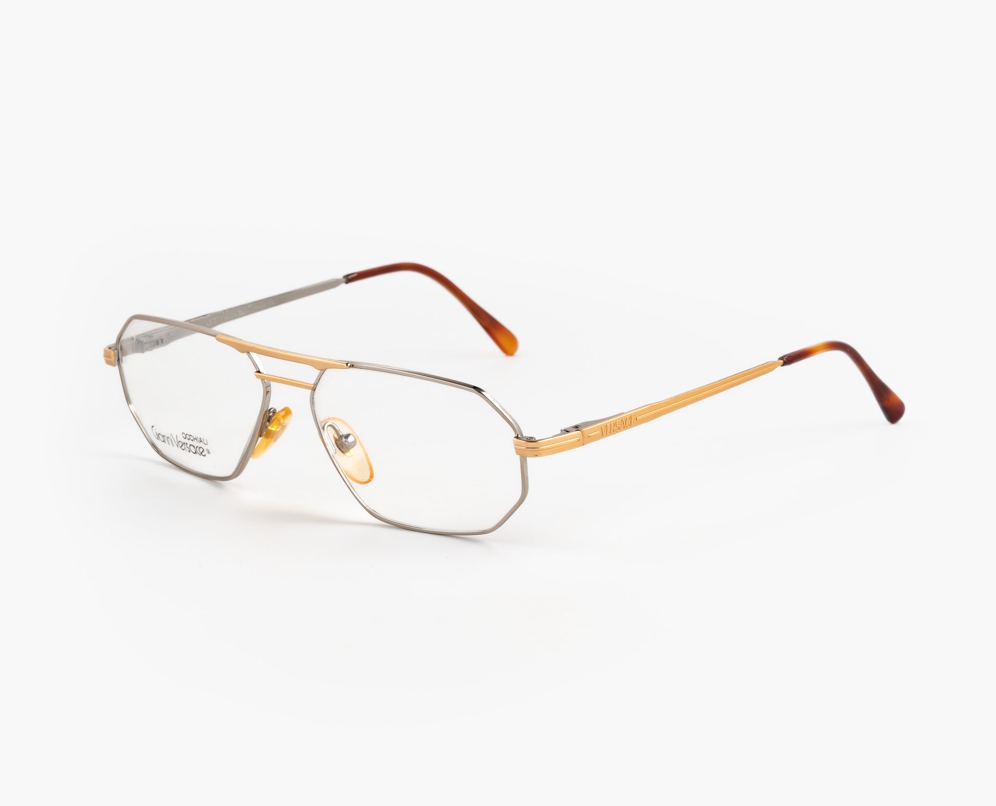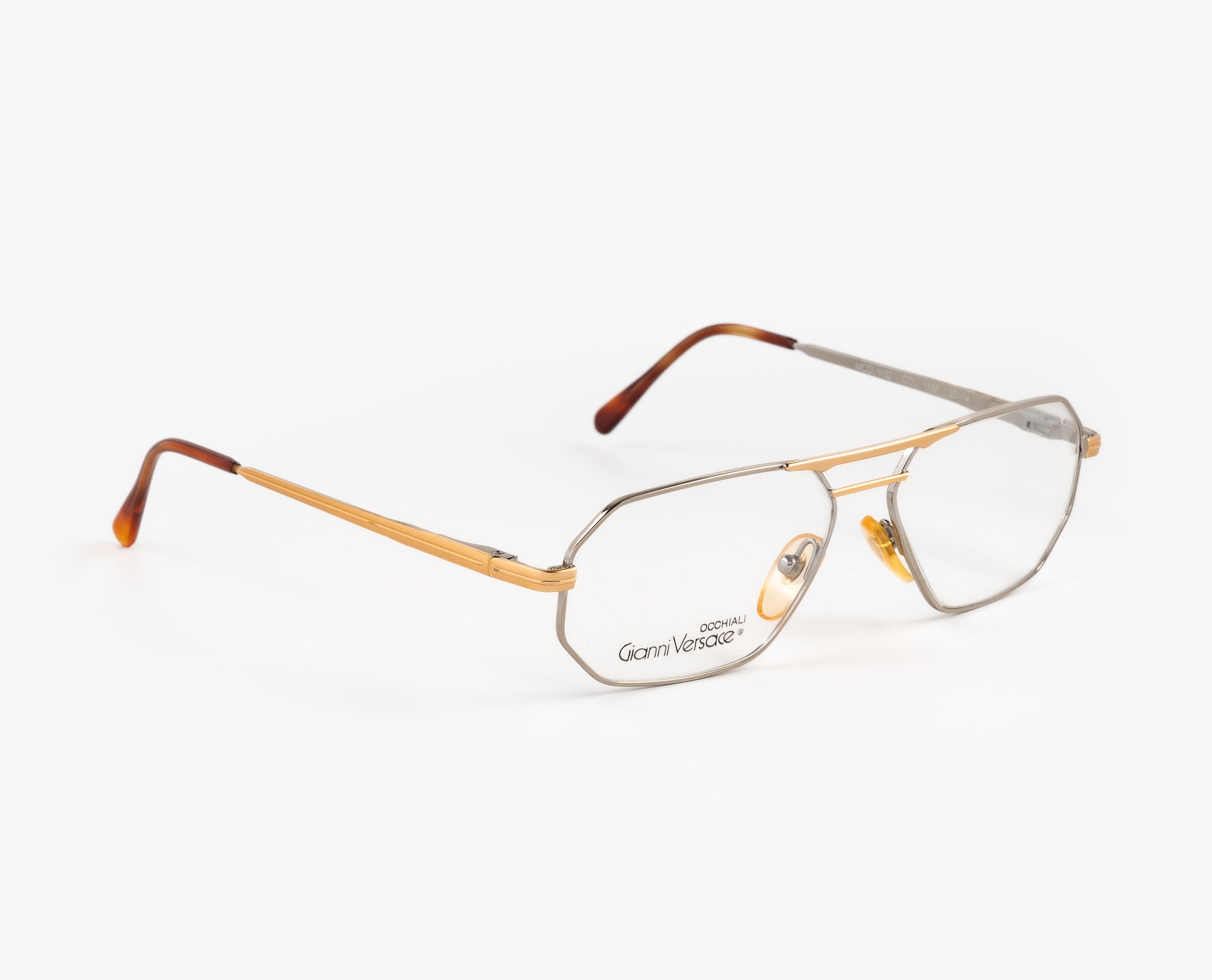 1990s Gianni Versace eyeglass frames. Sleek aviator style with a two-tone finish. These just look so good.