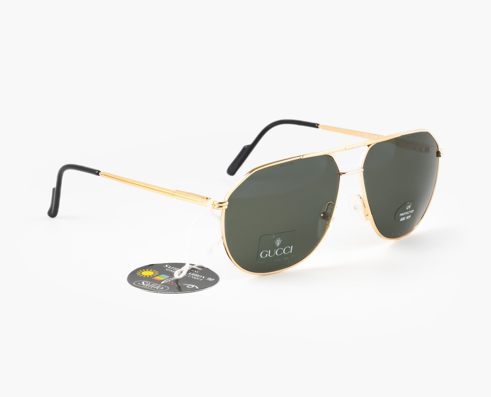 1980's Gucci Aviator sunglasses. Gold plated with dark green lenses.