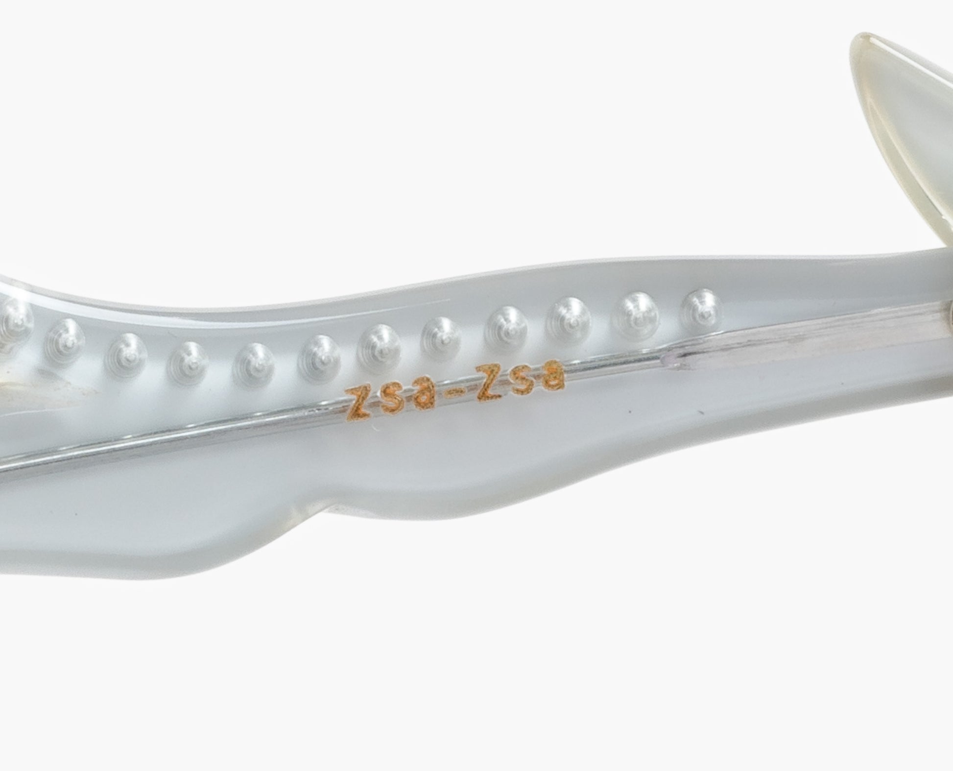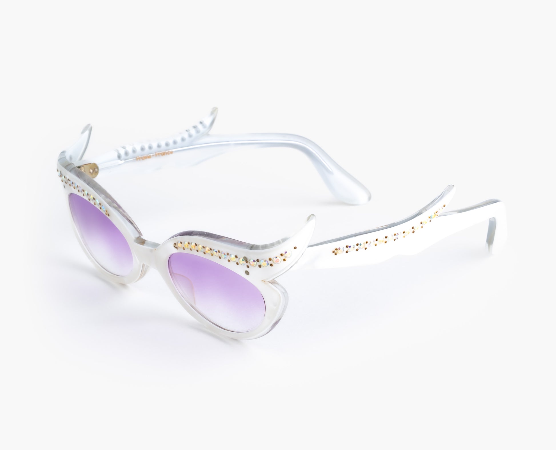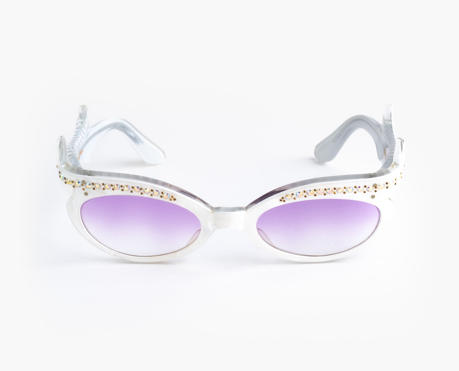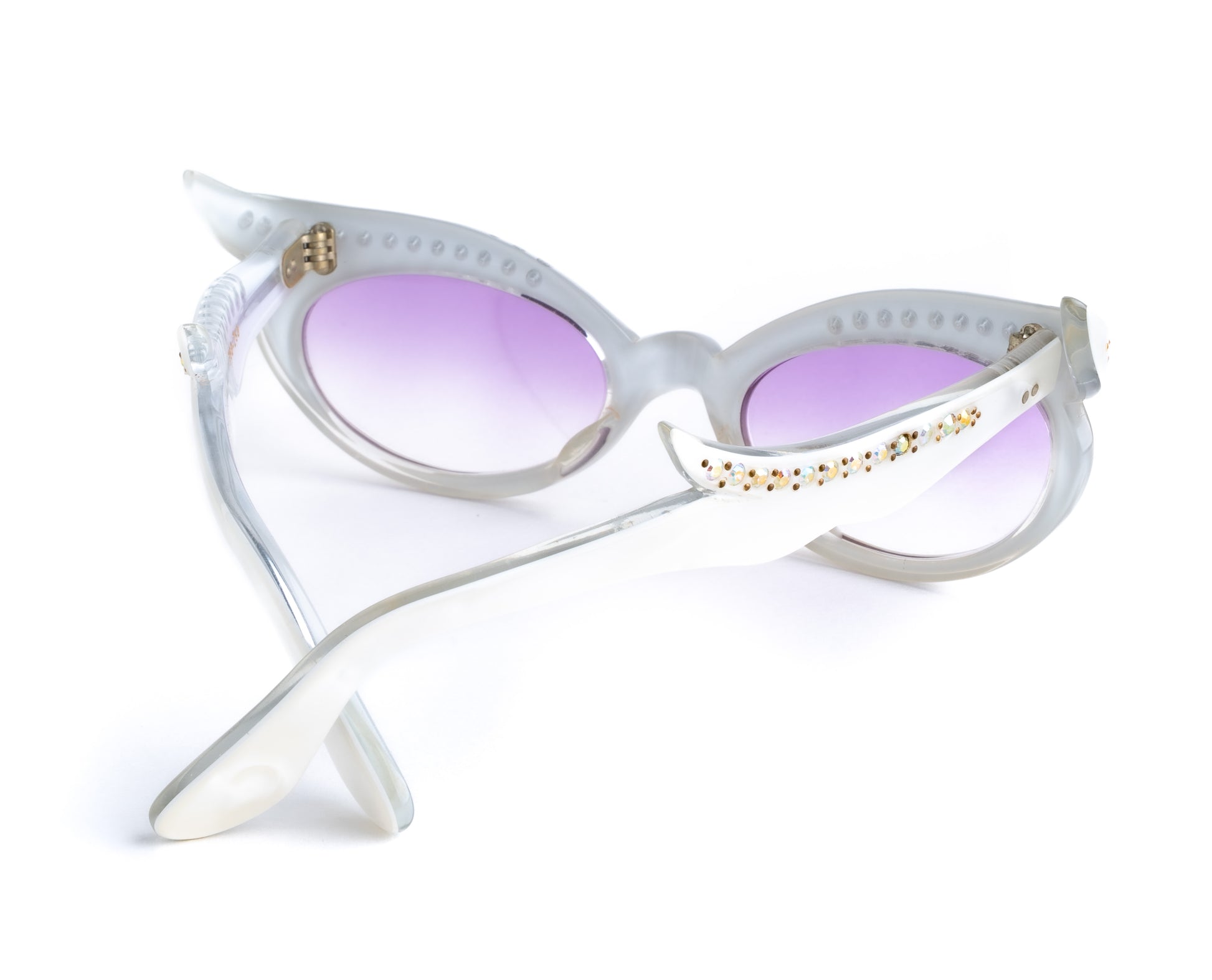 Very unique, small cat eye with mother of pearl color and crystals following the brows.