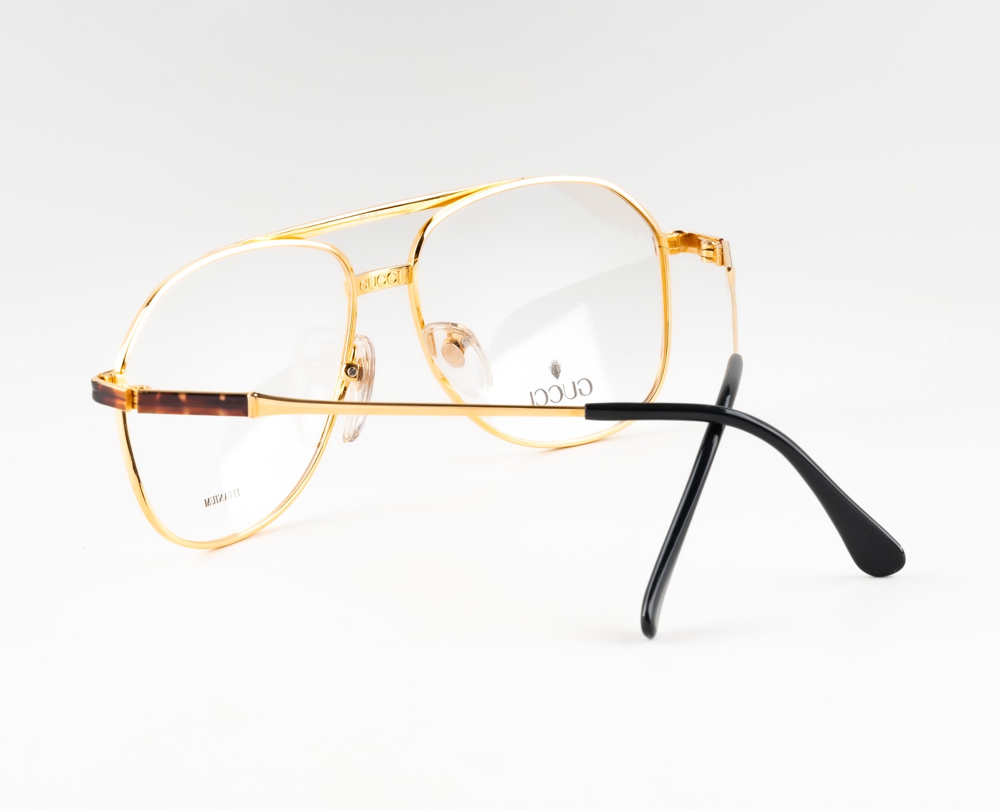 1980's Gucci Aviator frames. Gold plated with tortoise enamel on the sides and bridge. Rare and collectable to find them unused like this.